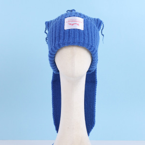 韩版甜美可爱长兔耳朵毛线帽子女秋冬保暖护耳字母贴布针织帽百搭