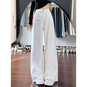 白色阔腿牛仔裤女2025夏季新款高腰显瘦宽松垂感小个子直筒拖地裤