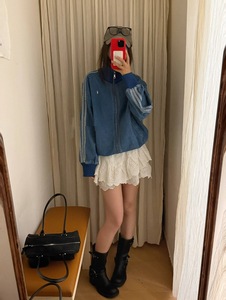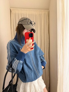 高版本RL拉夫立领夹克小马刺绣复古拼条水洗牛仔休闲宽松百搭外套