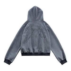 2025秋季新款美式复古手缝空气层连帽卫衣男女宽松情侣短款外套