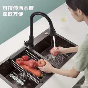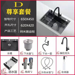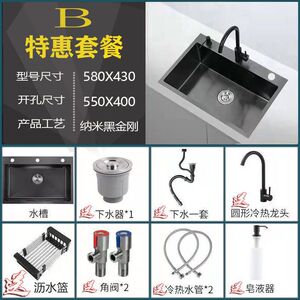W不锈钢黑纳米水槽手工大单槽洗菜盆全套一整套台中盆台下盆凉压