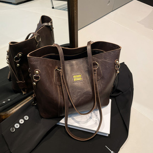 复古油蜡皮大包包女2025新款时尚腋下通勤包秋季单肩妈咪包托特包