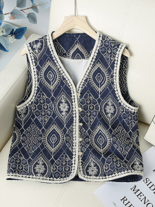 批发民族风复古绣花重工刺绣马甲背心百搭宽松外搭无袖马夹上衣