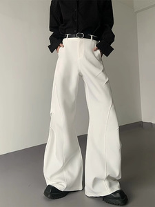 美式设计感白色拼接垂感褶皱小众微喇叭弯刀西裤男高级感阔腿西裤