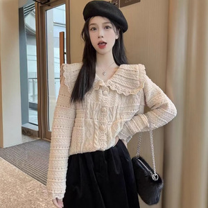 韩系chic法式别致温柔毛衣2025新款秋冬外套针织开衫娃娃上衣春秋