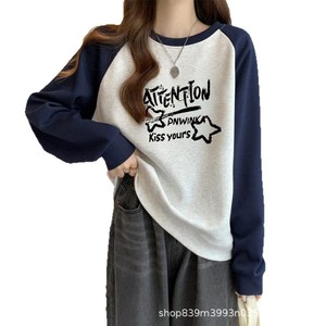 休闲百搭插色圆领卫衣女春秋新款初高中生内搭宽松无帽长袖上衣