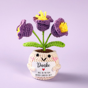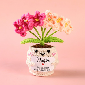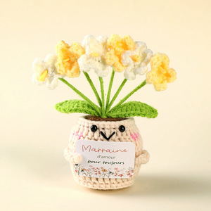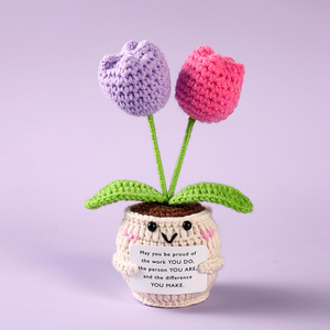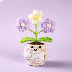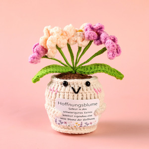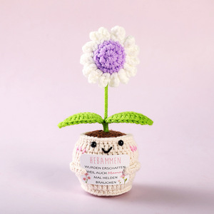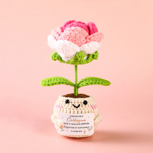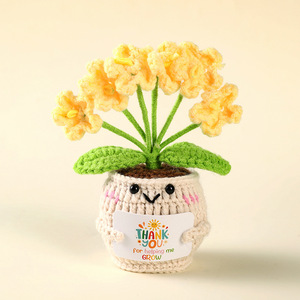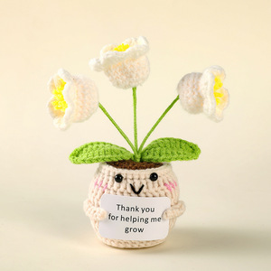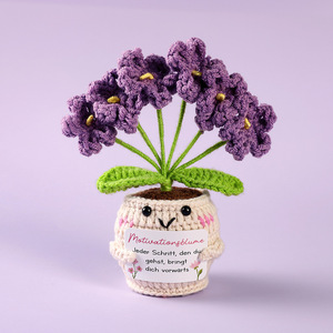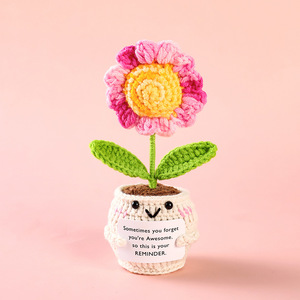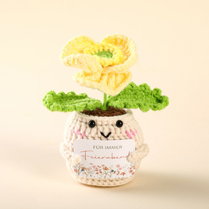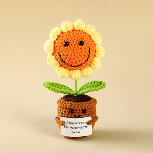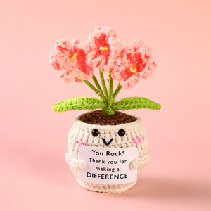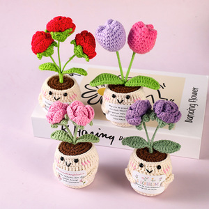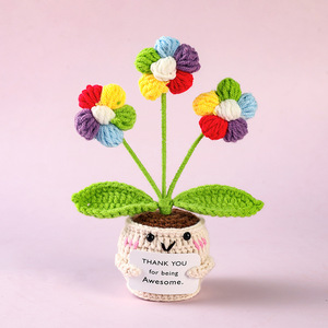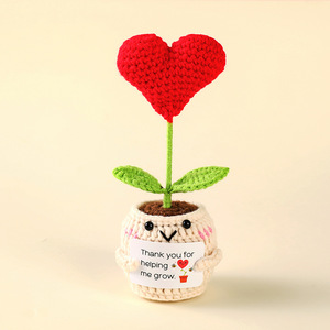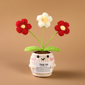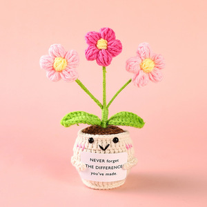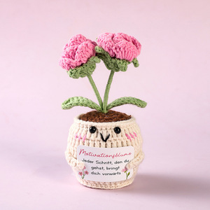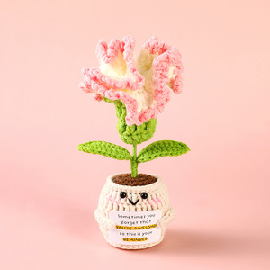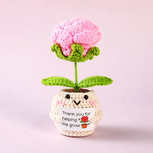 成品毛线手工针织积极盆栽玩偶编织盆栽饰品钩织正能量仿真花绿植