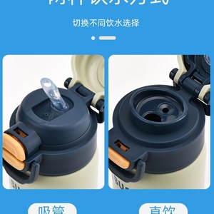儿童保温杯男孩上学水杯小学生316不锈钢吸管双饮水壶日用 餐厨饮