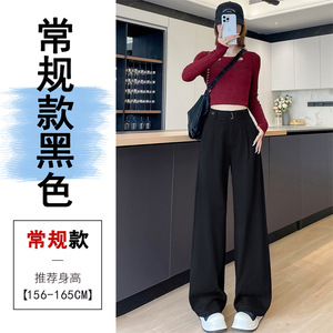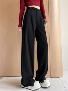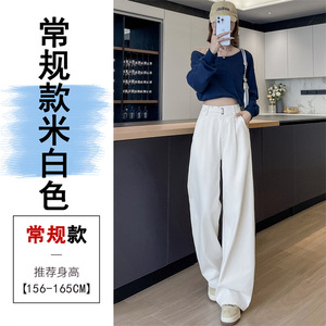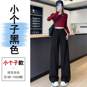 卡其色水洗棉窄版阔腿裤女秋季新款宽松显瘦小个子高腰直筒休闲裤