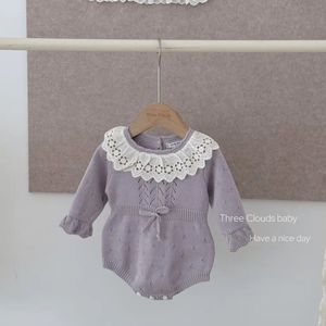 春秋婴幼儿花边领针主包屁衣哈衣外套2025新款女宝宝连体套装