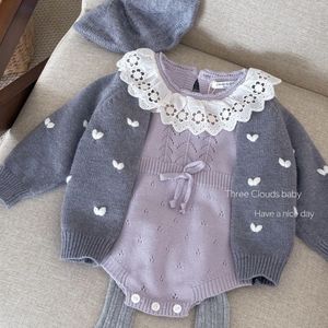 紫色蝴蝶结哈衣+灰色爱心外套