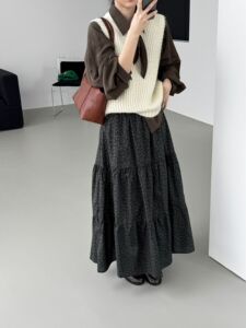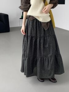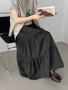 那末秋天的气息~韩系复古文艺印花半身女拼接蛋糕裙A字长裙E2702