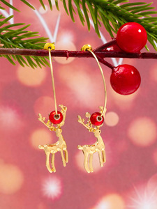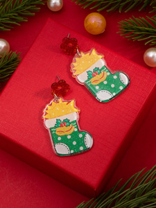跨境爆款亚克力圣诞节流苏派对羊驼耳环圣诞树耳钉亮片麋鹿耳坠