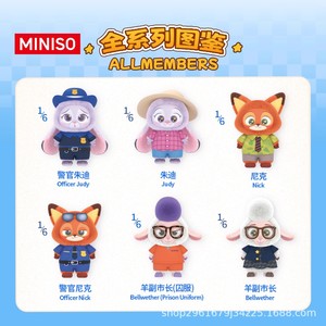 正版MINISO名创优品疯狂动物城搪胶毛绒盲盒玩偶挂件潮玩女生礼物