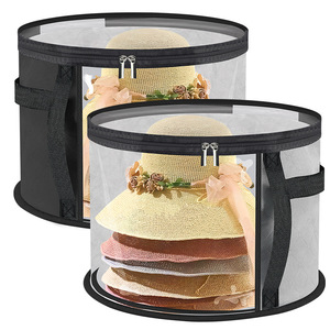 跨境圆形透明帽子收纳桶收纳盒便携旅行帽子收纳袋带提手帽子收纳