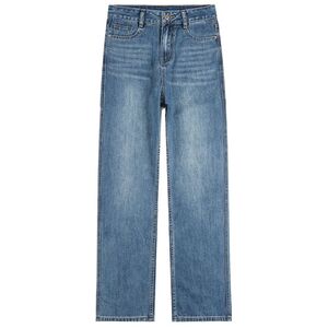 复古蓝窄版高腰直筒牛仔裤女早秋简约时尚垂感阔腿裤批发