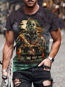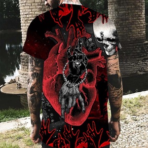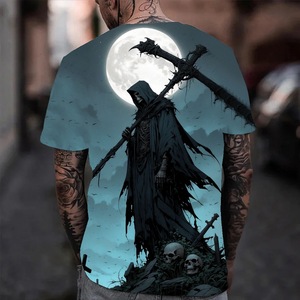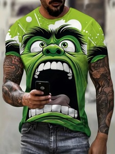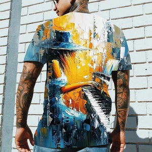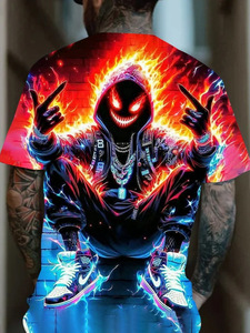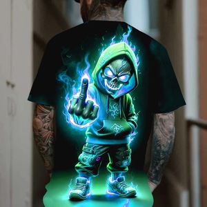 速卖通2025新款嘻哈T恤3D数码印花男士休闲圆领速干短袖上衣