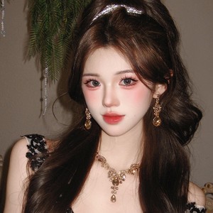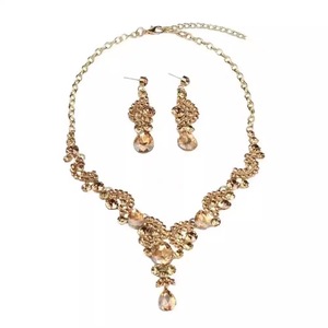复古香槟色水滴闪钻项链女轻奢小众宴会晚礼服锁骨链奢华颈链配饰