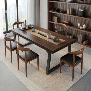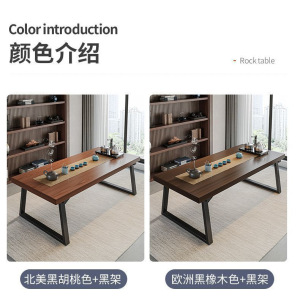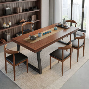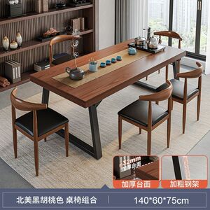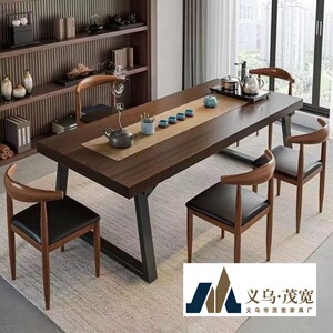 实木色茶桌椅组合一桌五椅喝茶桌新中式商谈办公大板泡茶桌茶几桌