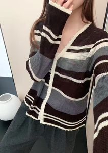 2025秋季新款羊毛衫v领开衫条纹外套毛衣长袖薄款高品质上衣女装