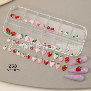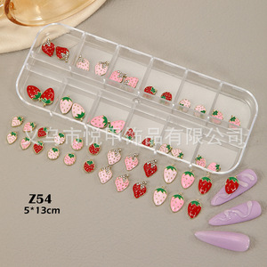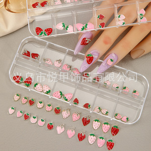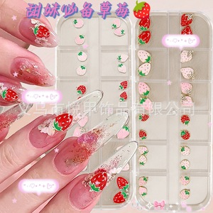 跨境12格合金滴油立体可爱精致小草霉镶钻饰品材料指甲装饰品