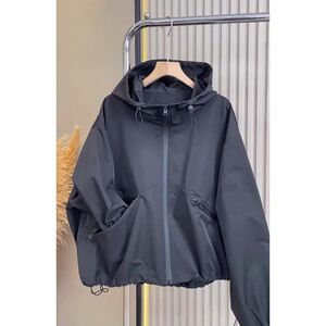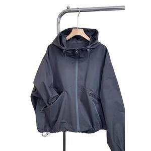 2025新款爆款秋季女士休闲高级上衣黑色连帽冲锋衣夹克外套女潮流