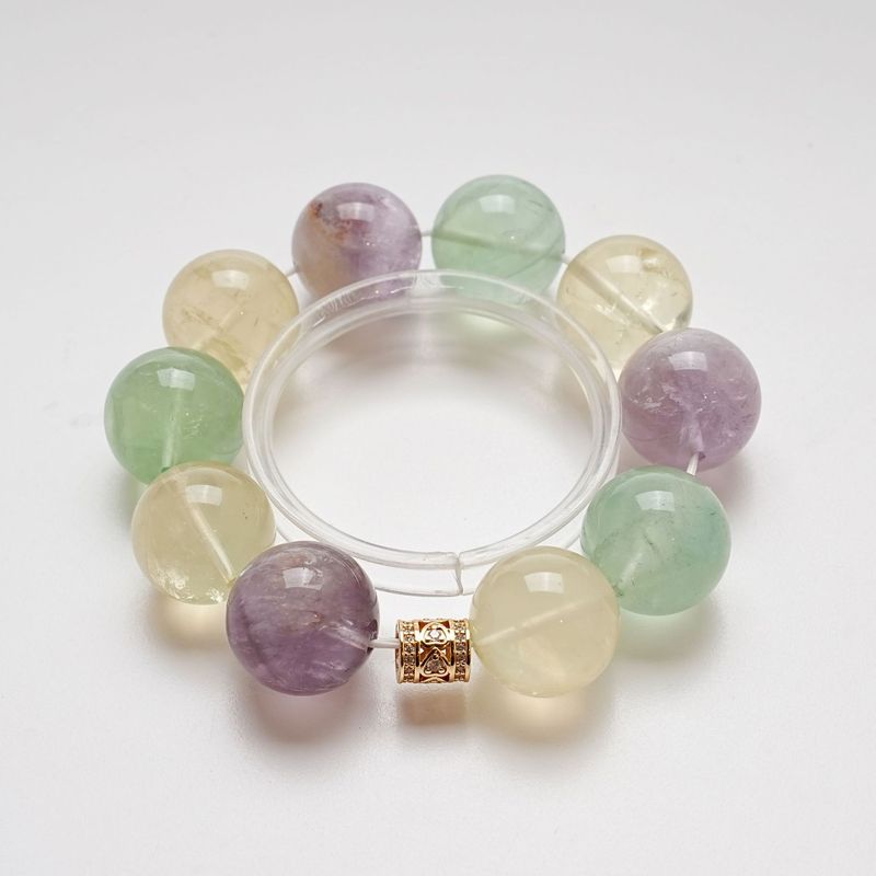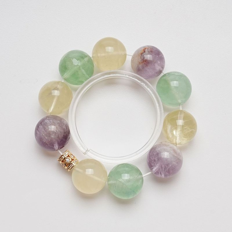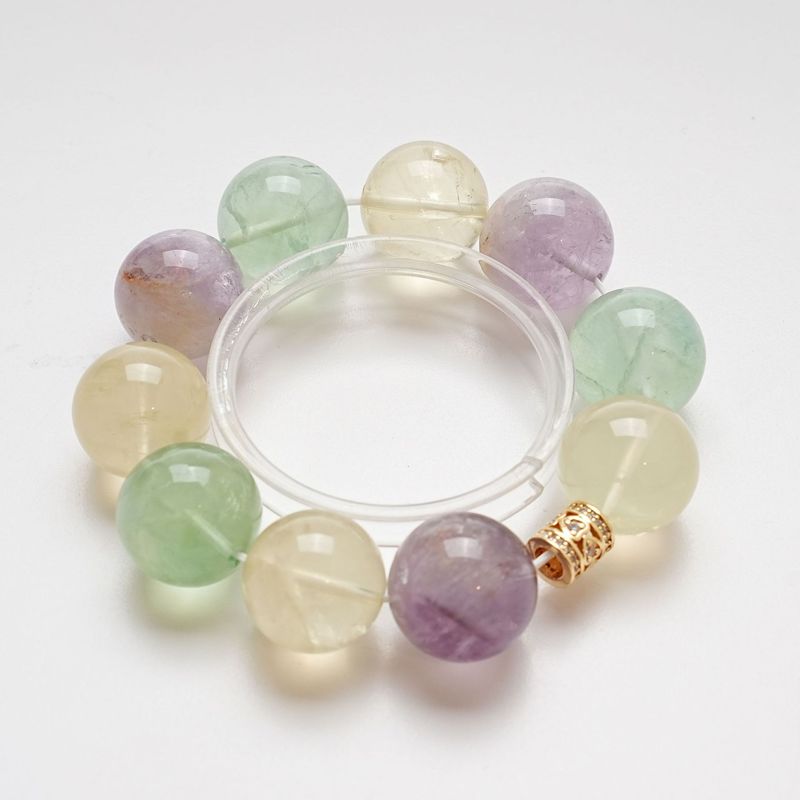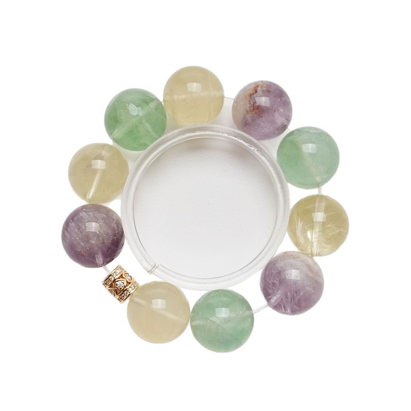【琉璃世界】天然柠檬晶水晶手串女款百搭绿萤石紫兔毛手链批发