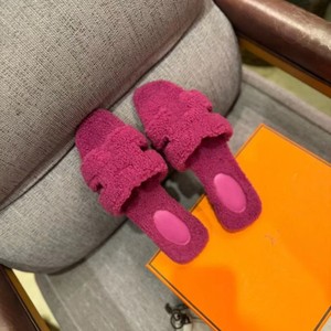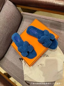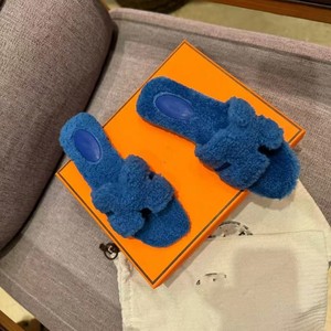 24秋季新款外贸大码羊羔毛H型一字毛毛拖鞋欧美外穿女鞋现货