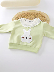 童装女童2025新款春秋可爱花边卡通兔花边领卫衣蕾丝裤套装两件套
