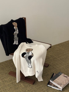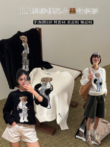 25秋冬新款RL小熊刺绣镂空圆领套头轻奢老钱风粗针德国机织毛衣