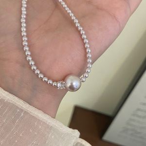 法式简约曼塔玫瑰施家珍珠吊坠锆石项链女时尚百搭精致锁骨链项饰