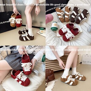 欧货磨砂真皮大头系带面包鞋休闲板鞋显瘦德训鞋平底鞋运动鞋女鞋