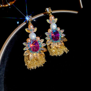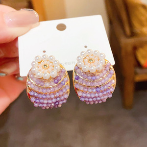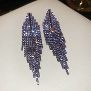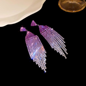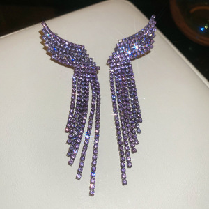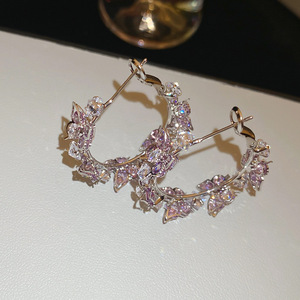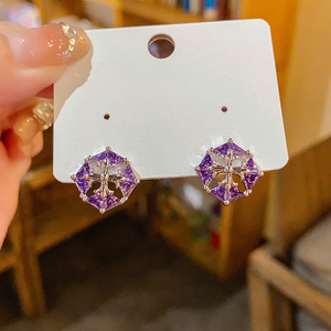 银针法式紫色镶钻爱心锆石耳环轻奢高级感耳钉时尚耳饰设计感小众