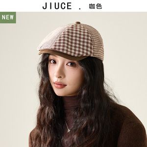 复古格纹前进帽女秋季新款优雅百搭贝雷帽韩版休闲时尚鸭舌帽子潮