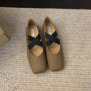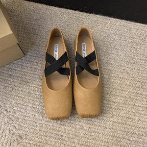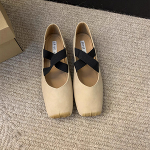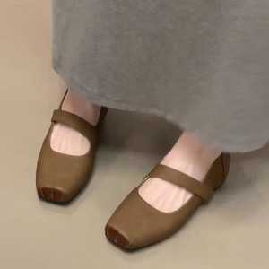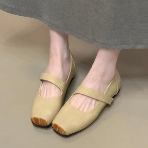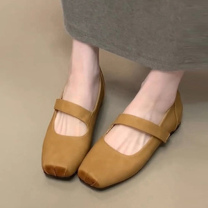 羊皮版法式玛丽珍鞋内增高鞋2025新款一脚蹬软底猪鼻子单鞋小皮鞋