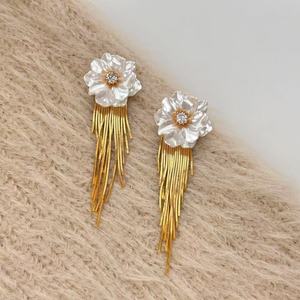 法式复古花朵流苏耳环轻奢高级感耳钉小众设计感时尚气质银针耳饰