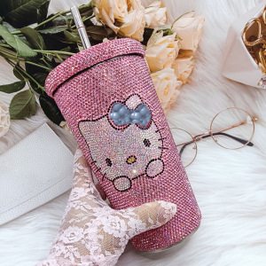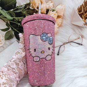 镶钻轻奢Kiti水钻双层保温不锈钢吸管咖啡杯瘦身杯礼品杯饮料杯