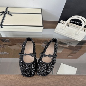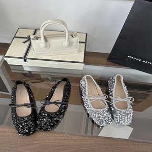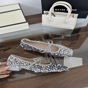 晚风女鞋银色亮片玛丽珍鞋夏季配裙子法式蝴蝶结粗跟单鞋晚晚鞋子