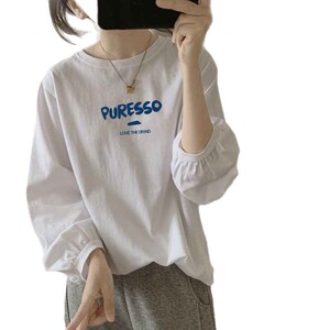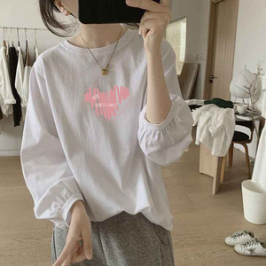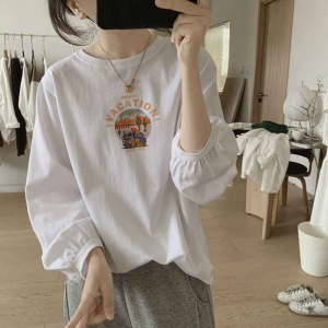 纯棉宽松灯笼袖七分袖打底衫女2025秋季新款长袖休闲t恤百搭上衣