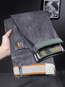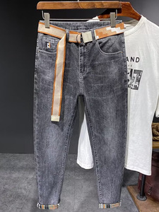 牛仔裤男士高档弹力裤子春秋季新款潮流百搭水洗烟灰小直筒长裤子