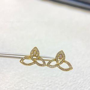 HW三叶草马眼镶钻耳钉女镀18k玫瑰金橄榄叶满钻鸢尾花高级感耳环