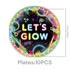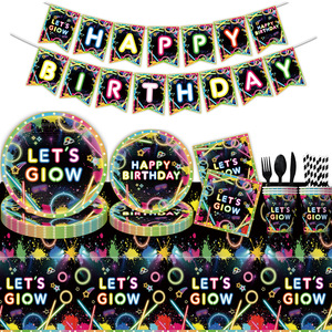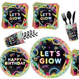 跨境新款霓虹灯主题儿童生日派对用品一次性桌布纸盘纸杯餐具布置