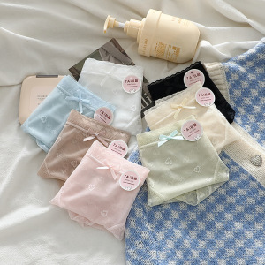 夏季超薄无痕薄款网纱内裤女蝴蝶结7A透气舒适裆部中腰女士三角裤