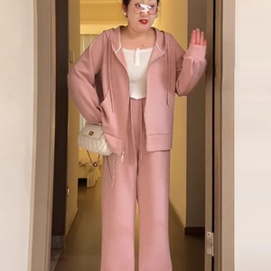 胖MM特大码300斤时尚休闲运动套装女秋冬季卫衣外套+裤子两件套24