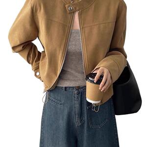慵懒风设计复古立领短款外套新款春秋休闲小个子夹克机车上衣2025