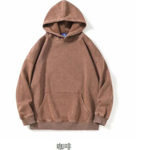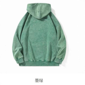 350克复合牛奶丝帽衫复古水洗蜡染做旧卫衣潮流宽松男女情侣同款