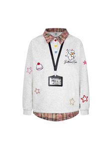 美式复古小狗刺绣POLO领假两件长袖卫衣女秋冬学生宽松外套上衣