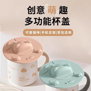 亚马逊可爱猫咪杯盖多功能硅胶茶杯盖陶瓷马克杯保温杯通用防尘盖