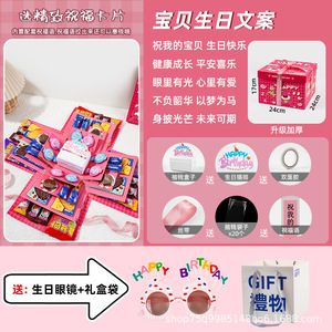 宝贝生日祝福语【卡通粉】加配眼镜+手提袋