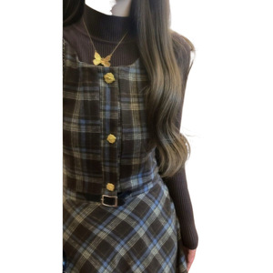 秋冬法式复古针织衫打底毛衣毛呢格子马甲格纹高腰半身裙三件套女